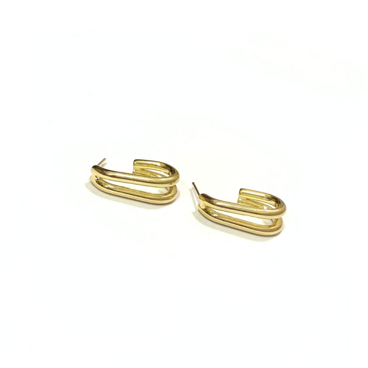 Brinco 2 Fios Liso Banho a Ouro 18k